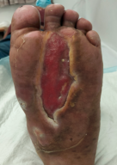 Plantar DFU with chronic osteomyelitis of ray 1 in the affected foot