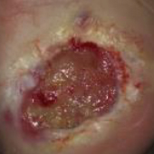 - 5.70 cm2 x 0.2 cm, moderate amounts of serous/ sanquinous drainage